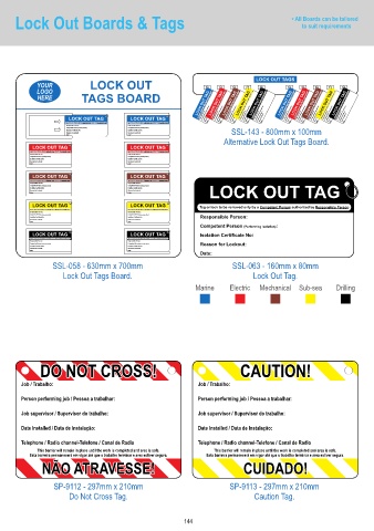 Lock Out Boards & T * All Boards can be tailored